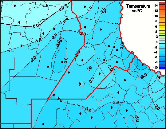Mapa de temperaturas mínimas de las las últimas 72 horas.