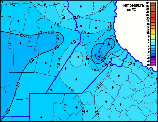 Mapa de temperaturas mínimas de las las últimas 72 horas.
