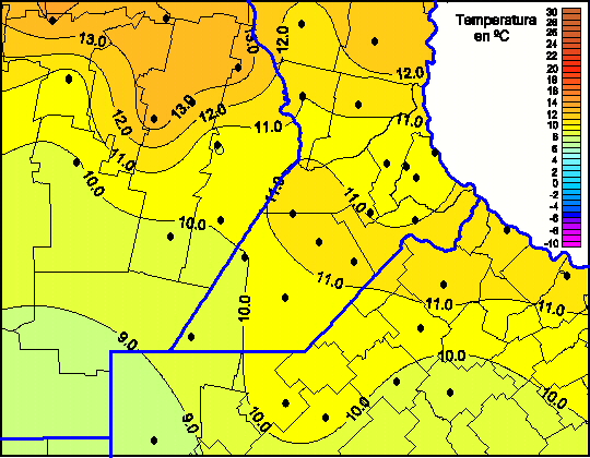 Mapa de temperaturas mínimas de las las últimas 72 horas.