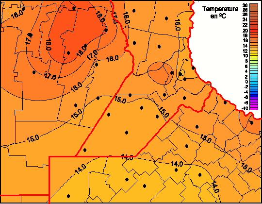 Mapa de temperaturas mínimas de las las últimas 96 horas.(Desde las 8:00AM hasta las 8:00AM). Se actualiza a las 10:00hs.