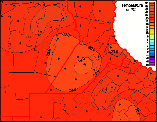 Mapa de temperaturas mínimas de las las últimas 72 horas.