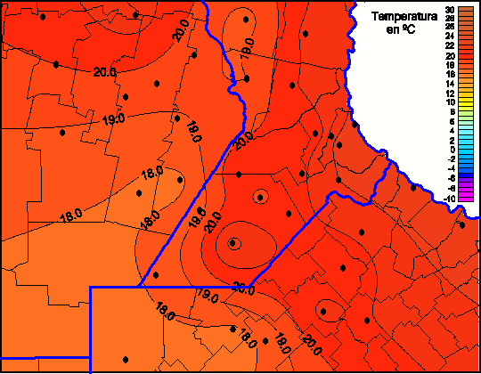 Mapa de temperaturas mínimas de las las últimas 72 horas.