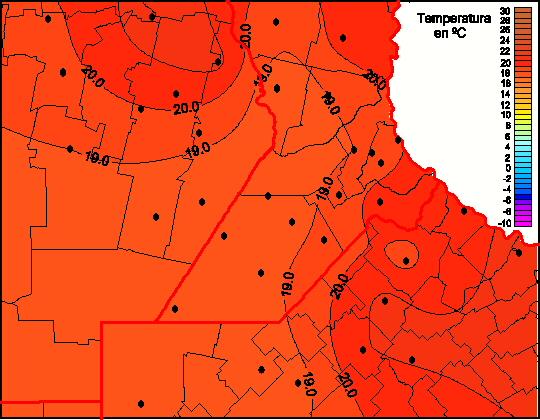 Mapa de temperaturas mínimas de las las últimas 72 horas.