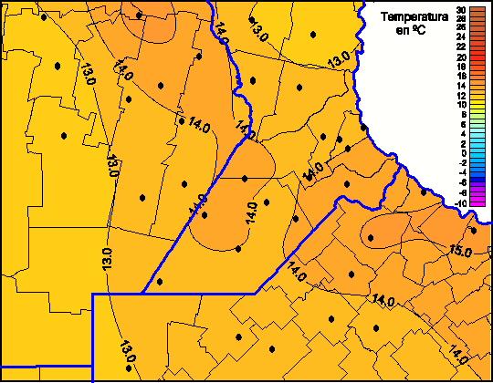 Mapa de temperaturas mínimas de las las últimas 120 horas.