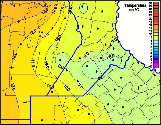 Mapa de temperaturas mínimas de las las últimas 72 horas.