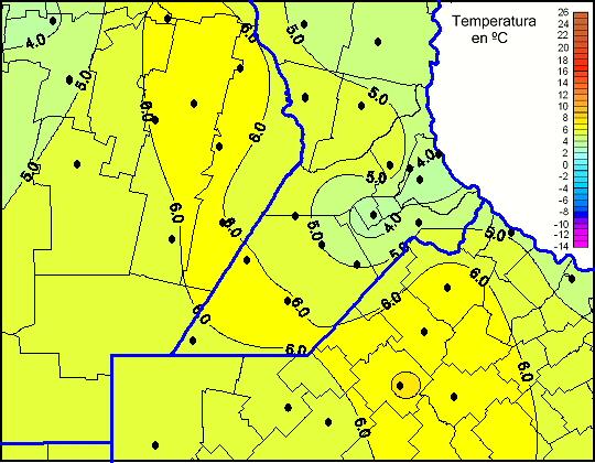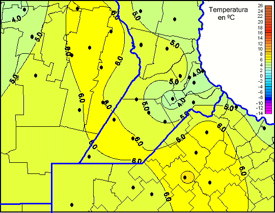 Mapa de temperaturas mínimas de las las últimas 72 horas.