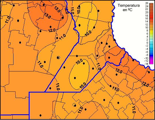 Mapa de temperaturas mínimas de las las últimas 72 horas.