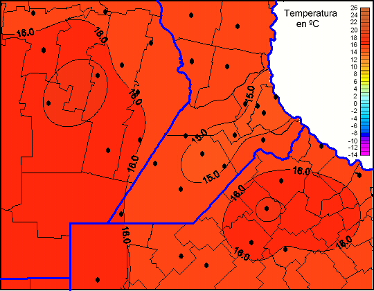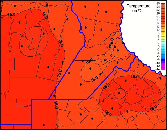 Mapa de temperaturas mínimas de las las últimas 96 horas.(Desde las 8:00AM hasta las 8:00AM). Se actualiza a las 10:00hs.