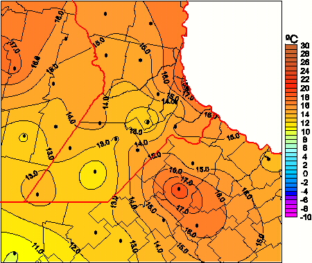 Mapa de temperaturas mínimas de las las últimas 72 horas.
