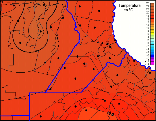 Mapa de temperaturas mínimas de las las últimas 72 horas.