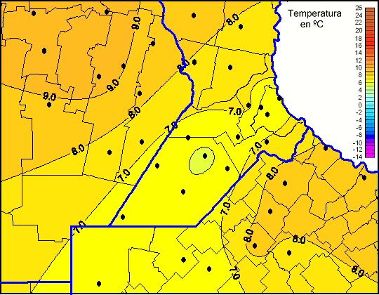 Mapa de temperaturas mínimas de las las últimas 72 horas.