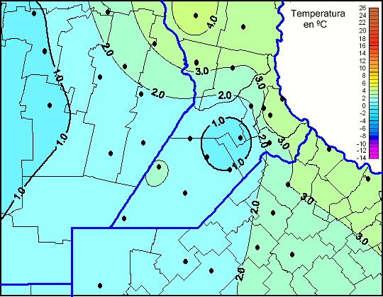 Mapa de temperaturas mínimas de las las últimas 72 horas.