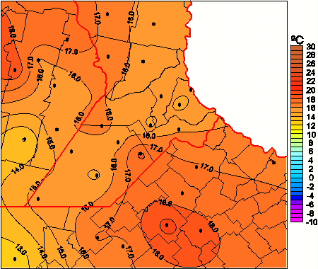 Mapa de temperaturas mínimas de las las últimas 72 horas.