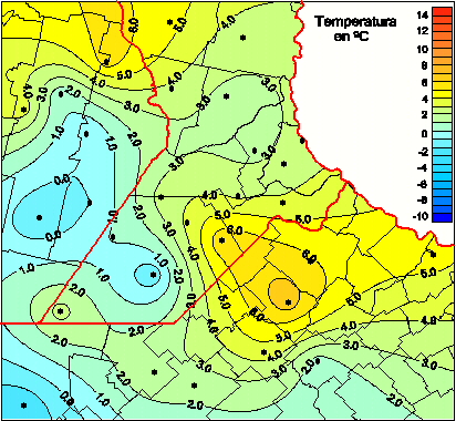 Mapa de temperaturas mínimas de las las últimas 72 horas.