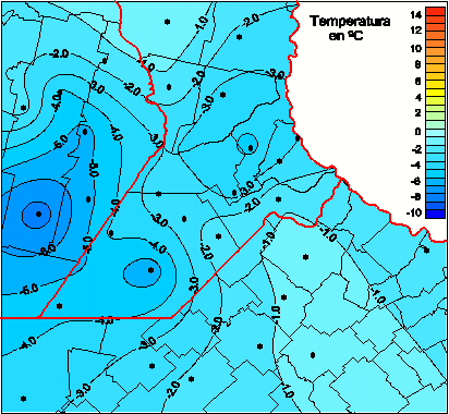 Mapa de temperaturas mínimas de las las últimas 48 horas.