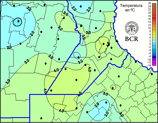 Mapa de temperaturas mínimas de las últimas 24 horas.