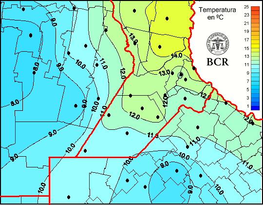 Mapa de temperaturas mínimas de las últimas 24 horas.