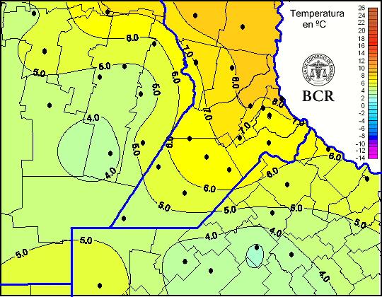 Mapa de temperaturas mínimas de las últimas 24 horas.