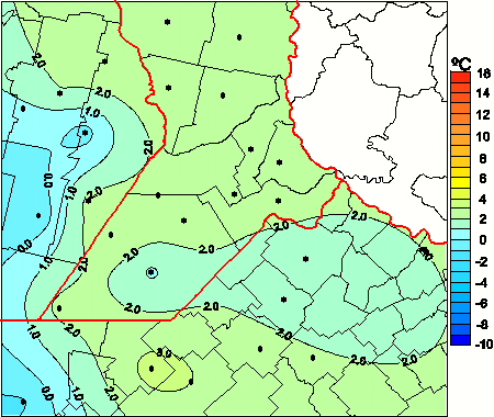 Mapa de temperaturas mínimas de las las últimas 72 horas.