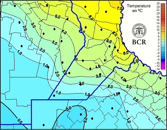 Mapa de temperaturas mínimas de las últimas 24 horas.