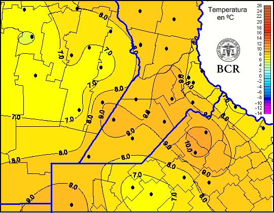 Mapa de temperaturas mínimas de las últimas 24 horas.