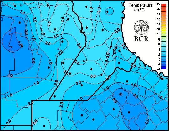 Mapa de temperaturas mínimas de las últimas 24 horas.