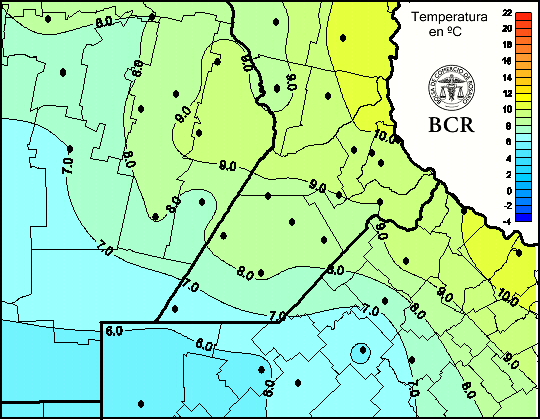 Mapa de temperaturas mínimas de las últimas 24 horas.