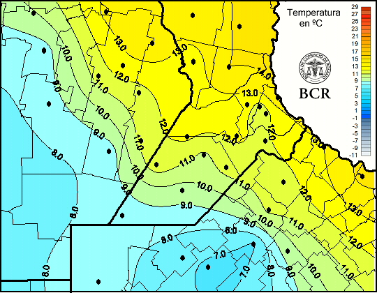 Mapa de temperaturas mínimas de las últimas 24 horas.