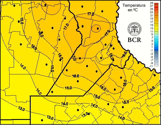 Mapa de temperaturas mínimas de las últimas 24 horas.