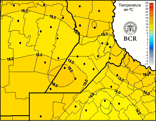 Mapa de temperaturas mínimas de las últimas 24 horas.