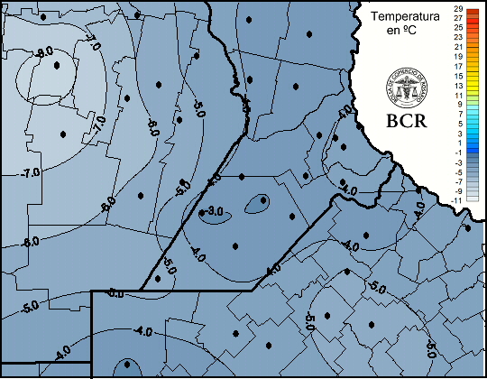 Mapa de temperaturas mínimas de las últimas 24 horas.