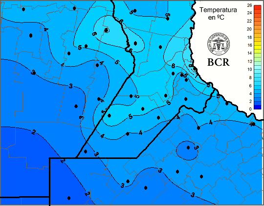 Mapa de temperaturas mínimas de las últimas 24 horas.