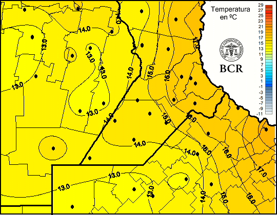 Mapa de temperaturas mínimas de las últimas 24 horas.