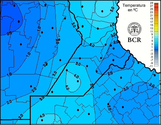 Mapa de temperaturas mínimas de las últimas 24 horas.