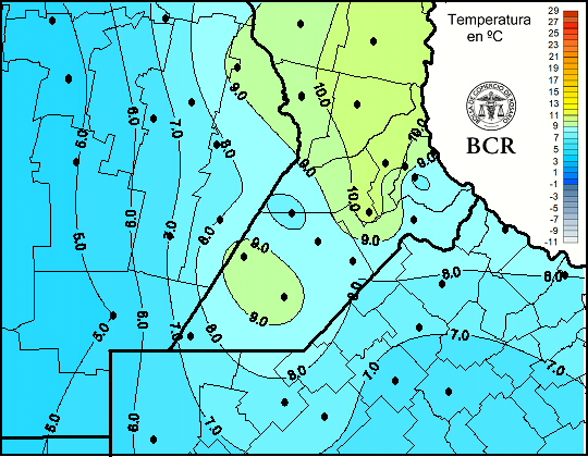 Mapa de temperaturas mínimas de las últimas 24 horas.