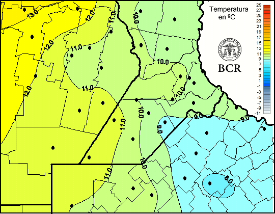 Mapa de temperaturas mínimas de las últimas 24 horas.