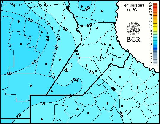 Mapa de temperaturas mínimas de las últimas 24 horas.
