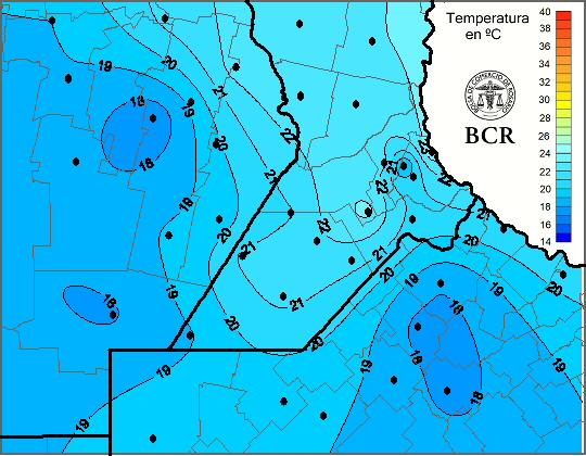 Mapa de temperaturas mínimas de las últimas 24 horas.