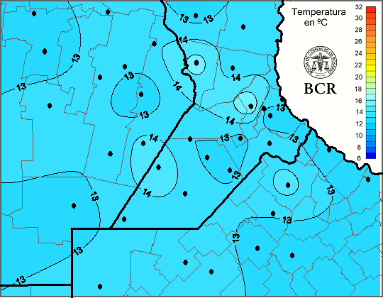 Mapa de temperaturas mínimas de las últimas 24 horas.