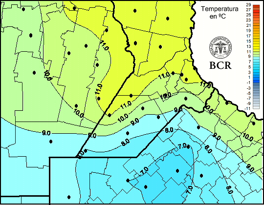 Mapa de temperaturas mínimas de las últimas 24 horas.