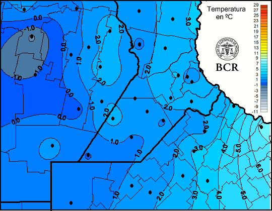 Mapa de temperaturas mínimas de las últimas 24 horas.