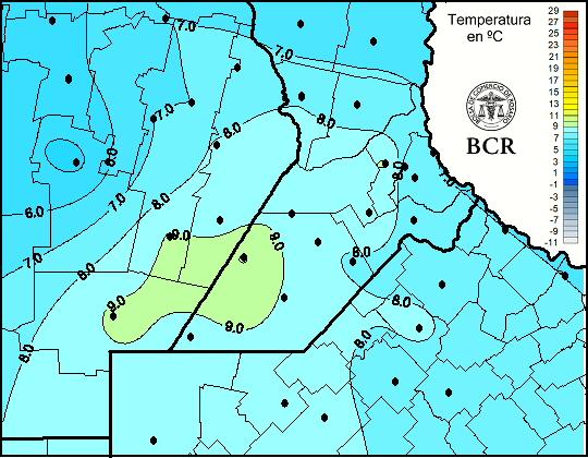 Mapa de temperaturas mínimas de las últimas 24 horas.