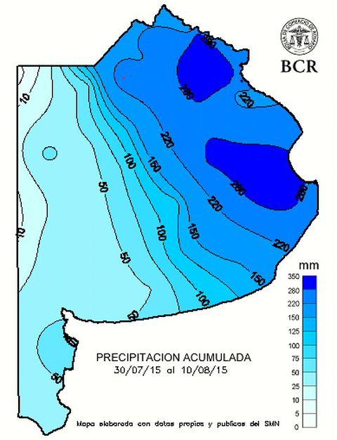 Pero, en estos últimos 13 días, el clima tomó un nuevo giro. Desde el 30 de julio, un fenómeno asociado a la mayor actividad del Atlántico ha generado un patrón repetitivo de lluvias. Se trata de tormentas que entran por el centro este de Buenos Aires, se expanden hacia el oeste y el norte, pasando por el sur y centro de Santa Fe, llegando a tocar los límites de Córdoba o incursionar heterogéneamente en su territorio. La salida del frente es siempre por el este del país, por Entre Ríos o la Mesopotamia. Podemos contar tres temporales que siguieron este patrón y que fueron responsables de volcar formidables cantidades de agua sobre el margen este del país a partir del 30 de julio. En las imágenes adjuntas quedan reflejados los montos recibidos por la Región Pampeana, y Buenos Aires en particular, en el período que inició el 30 de julio y cerró el 10 de agosto.