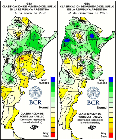 El 2026 comenzó con un alivio de las temperaturas y algunas lluvias aisladas, aunque insuficientes para revertir la situación. Todo esto que pasó en pocos días, tuvo un gran impacto en las expectativas de rindes superadores para los maíces tempranos. La posibilidad de concretar rindes de 120 a 130 qq/ha en la región central, incluyendo el centro de Buenos Aires, quedó atrás. En esta 1ra estimación se toman en cuenta expectativas más moderadas, en torno a rindes promedios para la región central, en donde las siembras tempranas fueron muy importantes. Los técnicos de estas zonas coinciden en señalar que "hay una sensación de que el maíz temprano se pinchó, perdió el potencial en el llenado". La falta de agua y el estrés por altas temperaturas estaría dejando entre un 10 y 20% de recorte en función de cuándo y cómo regrese el agua.