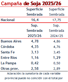 Para esta estimación se tiene en cuenta un área de 9,75 M ha (20.000 ha más que se han sumado en Entre Ríos, siguiendo los datos del SIBER de la Bolsa de esa provincia). Para el área a cosechar de grano que ingresaría al circuito comercial se parte de 8,05 M ha.