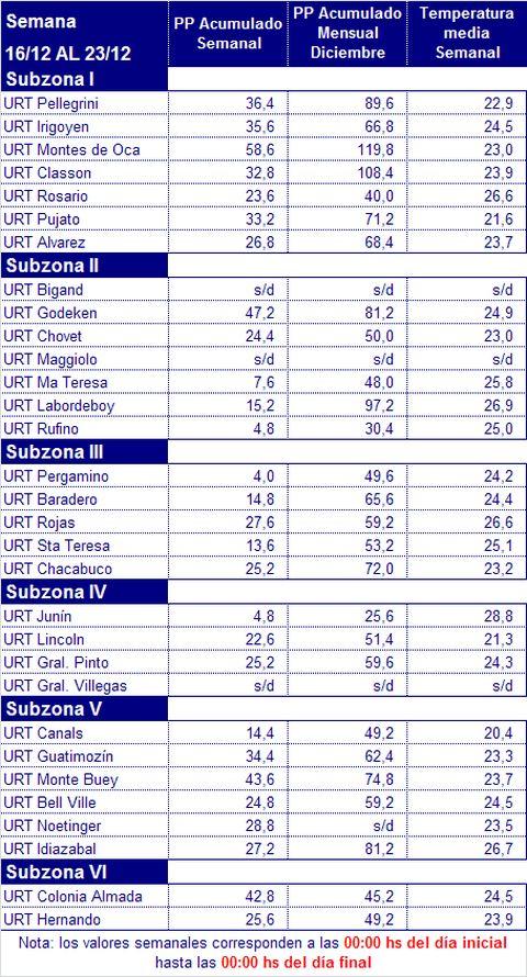 La semana comprendida entre el jueves 23 y el miércoles 29 de diciembre comenzará con condiciones estables en toda la región GEA. La presencia de una masa de aire cálido sobre el centro y norte del país mantiene temperaturas muy altas en toda la región GEA con marcas térmicas máximas que pueden alcanzar valores superiores a los 35°C durante el jueves. Hacia la noche del jueves, la llegada de un sistema frontal frío a la zona central del país provocará el desarrollo de precipitaciones en forma de chaparrones y tormentas de variada intensidad. De manera puntual, las mismas, pueden ser fuertes, acompañadas especialmente de ráfagas intensas de viento y no se descarta la caída de granizo. Los acumulados más importantes se esperan sobre la provincia de Santa Fe y Córdoba, en tanto que sobre Buenos Aires se prevé que las precipitaciones se registren de manera más aislada por lo que acumulados de lluvia importantes se darán sólo de manera puntual. El frente frío tendrá una rápida velocidad de desplazamiento, por lo que se prevé un cambio rápido de las condiciones, llegando al sábado sin lluvias y una significativa disminución de la cobertura nubosa que se mantendrá durante el resto de la semana. Posterior al pasaje del sistema frontal, se prevé el ingreso de una masa de aire con características diferentes a las previas, pero los cambios previstos no serán demasiado significativos. Si bien las marcas térmicas presentarán un leve descenso, las mismas serán superiores a los valores normales para el mes de diciembre. Esta nueva masa de aire frío se establecerá desde el domingo hasta el final del período sobre la zona central del país. De todas maneras, las características de la masa de aire se irán modificando con el transcurso de los días, recuperando rápidamente valores de temperatura muy altos. En cuanto a la humedad en las capas bajas de la atmósfera, se prevé que durante los primeros días de este período sea muy importante, y luego, con el ingreso de la masa de aire frío, se espera que se produzca un significativo secamiento que se mantendrá durante el resto del período, con un ascenso moderado hacia el comienzo de la próxima semana.