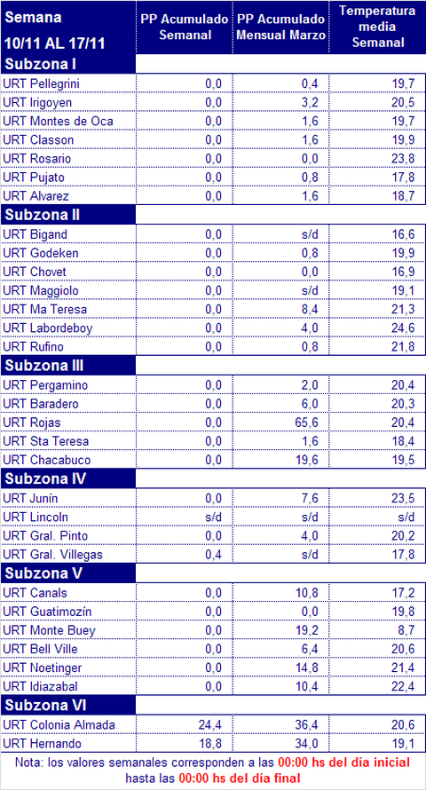 La semana comprendida entre el jueves 17 y el miércoles 23 de noviembre comienza con la presencia de un centro de alta presión ubicado sobre el océano Atlántico, que provoca condiciones de estabilidad en toda la región. La posición de este centro de alta presión, genera una importante circulación de viento prevaleciente del este o noreste durante los primeros días de la semana, lo que permite el ingreso de humedad en las capas bajas de la atmósfera. Esto favorecerá a que lentamente las condiciones comiencen a tornarse inestables, con un importante incremento del contenido de humedad sumado al ascenso de las marcas térmicas. A partir del sábado, en horas de la noche, se espera la llegada de un sistema frontal frío que provocará el desarrollo de precipitaciones en forma de chaparrones y tormentas de variada intensidad. Incluso, previo a la llegada del frente frío, podrían desarrollarse tormentas pre-frontales que afectarían de manera significativa el área GEA. Se espera que los acumulados sean importantes y se den de manera generalizada, si bien habrá zonas puntuales que recibirán acumulados más generosos, se prevé que en general sean lluvias de moderadas a fuertes. Las precipitaciones se extenderán hasta las primeras horas del lunes. Luego, ingresará un nuevo centro anticiclónico, que traerá condiciones estables a toda la región, influenciado por un eje de máxima presión de niveles medios de la atmósfera. Por este motivo, se prevé que cambien las condiciones, produciéndose una significativa disminución de la cobertura nubosa y un marcado descenso de las marcas térmicas. Esta situación se mantendrá hasta el final del período, con un importante incremento de la intensidad viento prevaleciente del sector Sur.