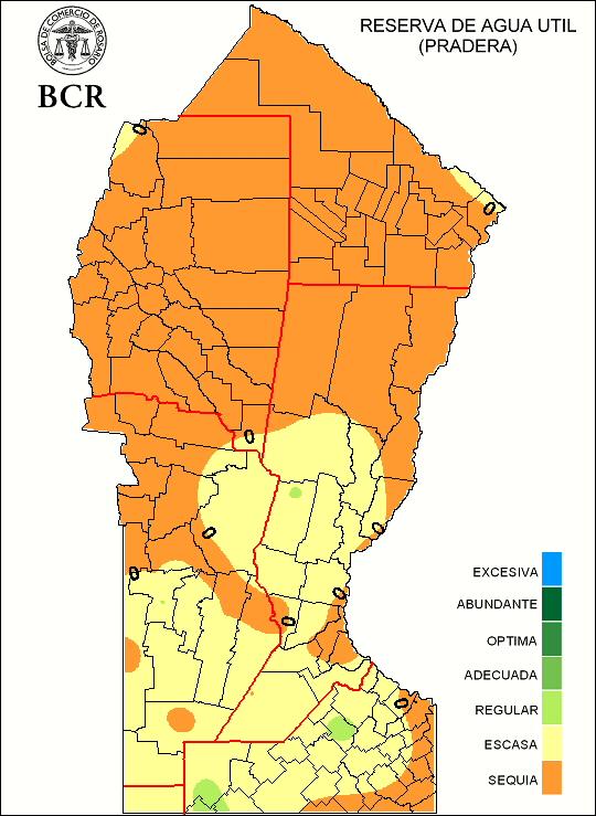 Con algunos sectores con características de sequía, toda la zona GEA presenta condiciones de reservas escasas. Para alcanzar condiciones de humedad óptima se necesitaría que en los próximos 15 días se registren precipitaciones superiores a los 100 mm y picos máximos de hasta 140 mm.