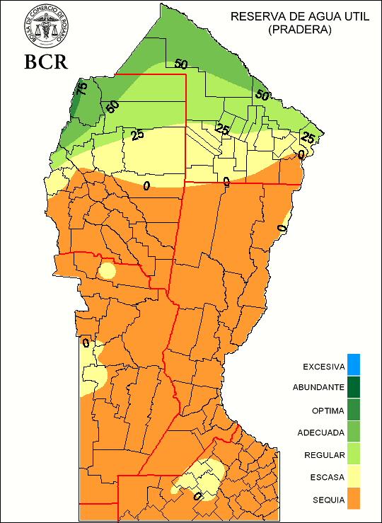 Las condiciones de sequía se siguen agravando sobre la zona GEA. El déficit hídrico, en promedio, se mantiene en el orden de los 100 mm. Para alcanzar condiciones óptimas de humedad edáfica en los próximos 15 días, hay sectores que presentan una necesidad de lluvias de 140 mm, con picos máximos de hasta 160 mm sobre el este de la provincia de Córdoba.
