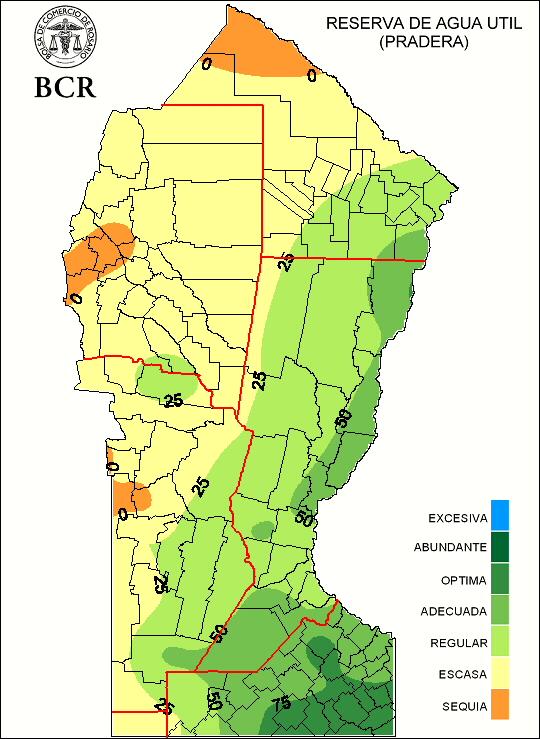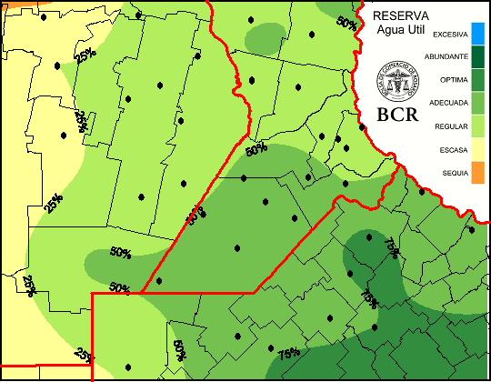Las máximas térmicas fueron entre moderadas y bajas. Los registros más altos de la semana se ubicaron entre 16 y 19ºC. El valor máximo del período también fue para Colonia Almada, Córdoba, con 19,1ºC, empatando con la marca de Pellegrini, en Santa Fe. El impacto de las lluvias y las bajas temperaturas repercute en las condiciones hídricas del suelo, acentuando la diferencia entre el este y el oeste de la región GEA. Si bien comparando con la semana previa toda la zona presenta una baja de la humedad en el suelo, pero es poco significativo, sin alterar que las reservas continúan siendo entre óptimas y adecuadas en la porción norte de la provincia de Buenos Aires y sur de Santa Fe. Sobre el norte de Santa Fe y el sudeste de Córdoba, las condiciones edáficas son regulares, en la porción del extremo oeste de la zona GEA, escasas. Para alcanzar un nivel óptimo de las condiciones de humedad del suelo, en los próximos 15 días, se necesitarían entre 40 y 60 mm en la provincia de Córdoba, alrededor de 20 mm en el centro de Santa Fe.